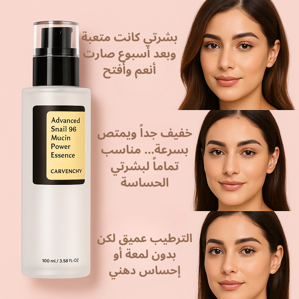 جددي بشرتك من الأعماق مع إيسنس الحلزون 96 من CARVENCHY – بتركيبة تحتوي على 96% من إفرازات الحلزون الفعالة.
