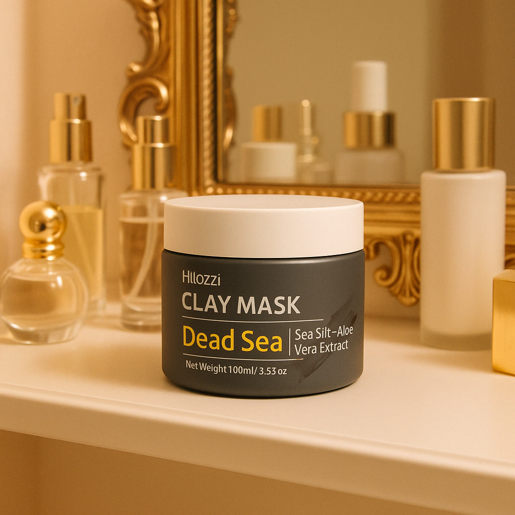 اكتشفي قوة الطين الطبيعي مع قناع الطين من البحر الميت من Hllozzi – تركيبة غنية بالطين الرمادي المستخلص من البحر الميت، مع الصبار والمعادن الطبيعية.