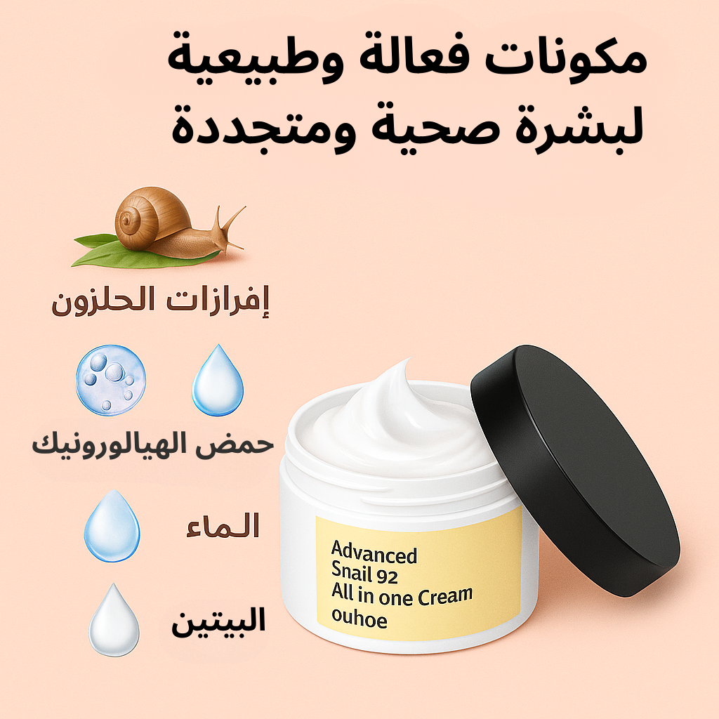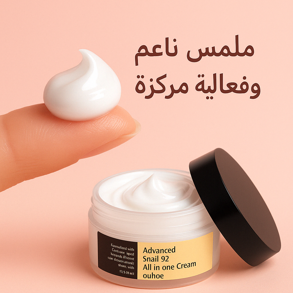 غيّري روتينك الجمالي مع كريم الحلزون المتطور – تركيبة كورية فاخرة توفر الترطيب، الشد، والتفتيح في منتج واحد.